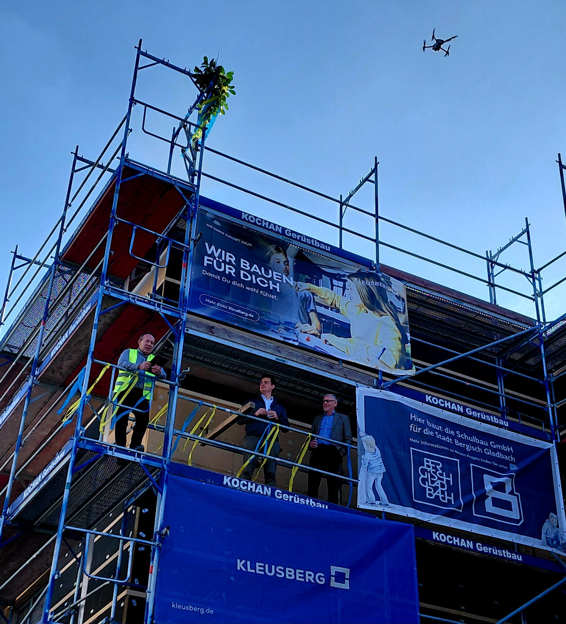 Der Neubau des Klassenhauses schreitet zügig voran; gestern wurde bereits Stapel-/ Richtfest gefeiert.